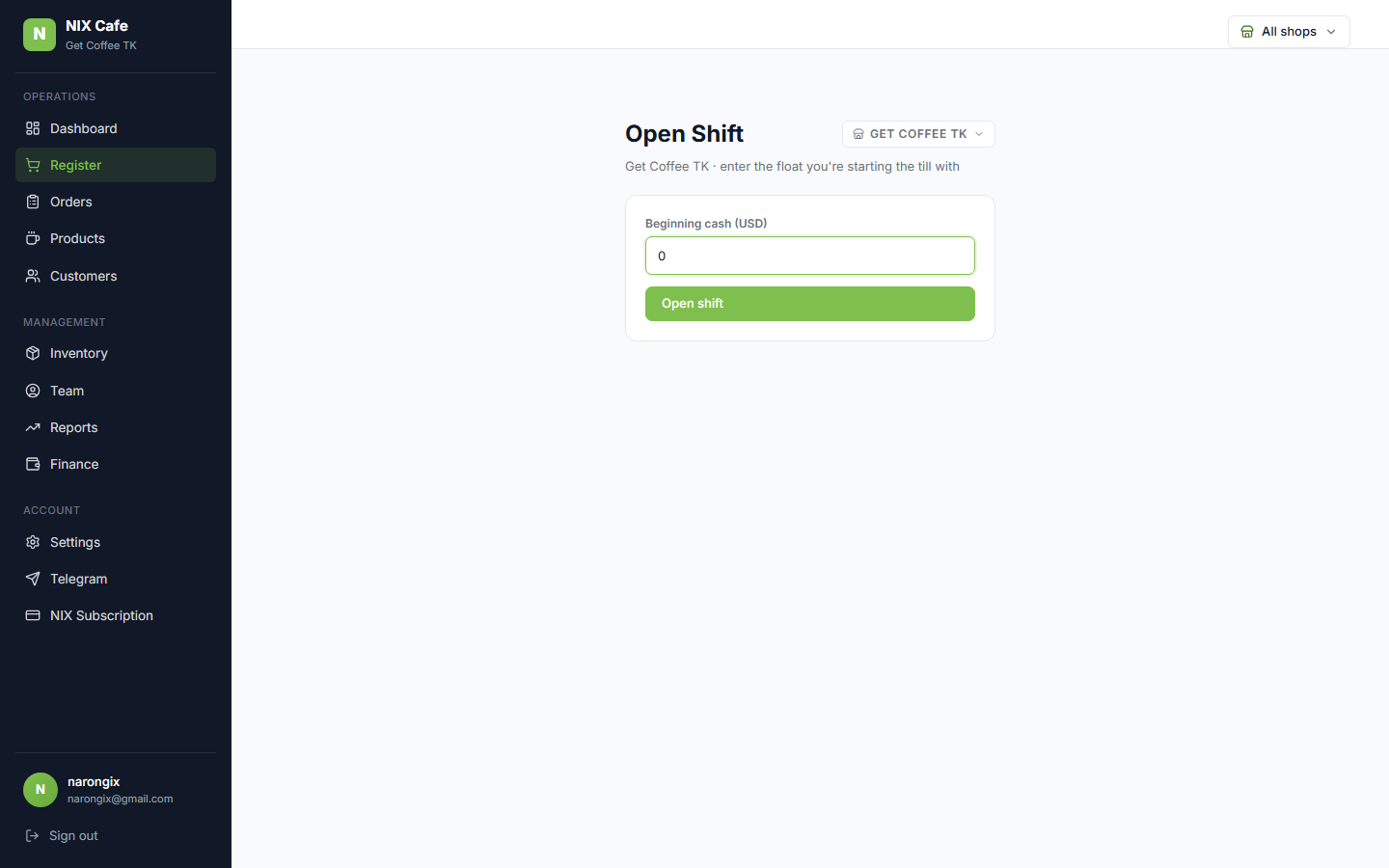 Cafe UI end-to-end for multi-shop